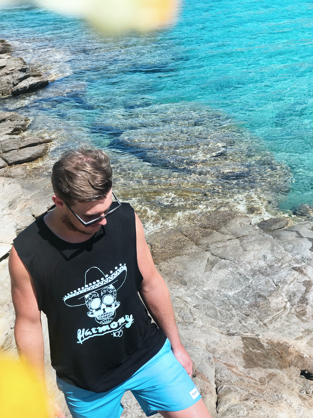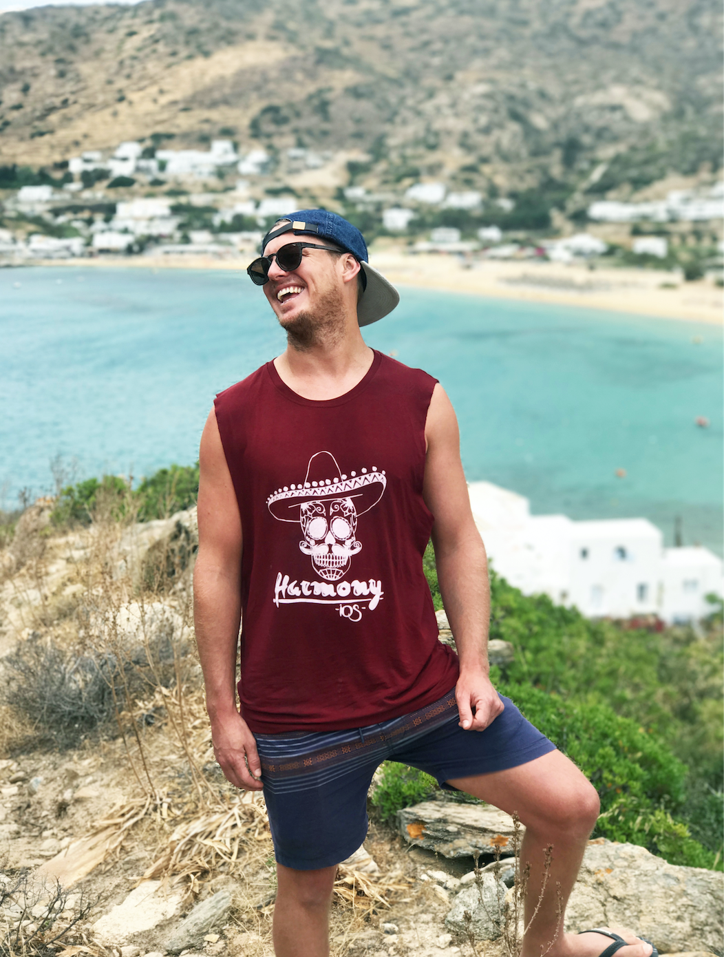 Do you want to get your hands on one of our soft cotton Harmony singlets? All you need to do is line up 7 Harmony shots, with your choice of a sweet or sour blend. We’ve got a brand spanking new range of Harmony threads, from singlets to dresses, all in our new soft cotton fabric. You’ll wear the skull singlet with pride once you’ve downed your 7 shots, before you make your way to Chora for a night of partying.